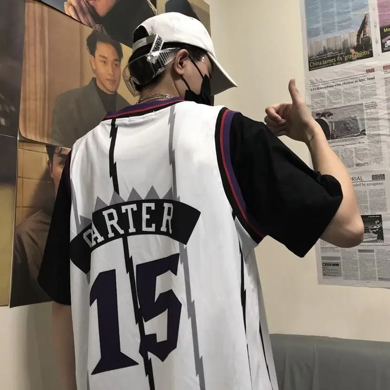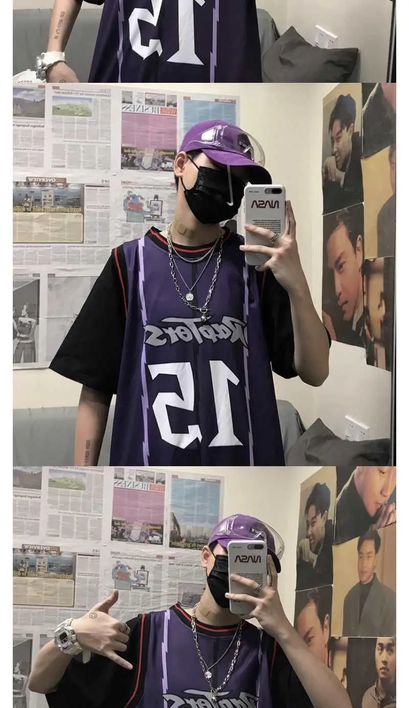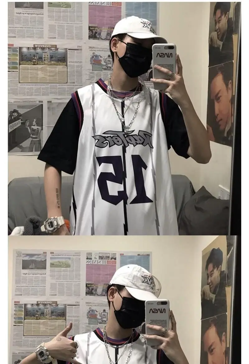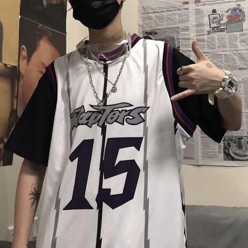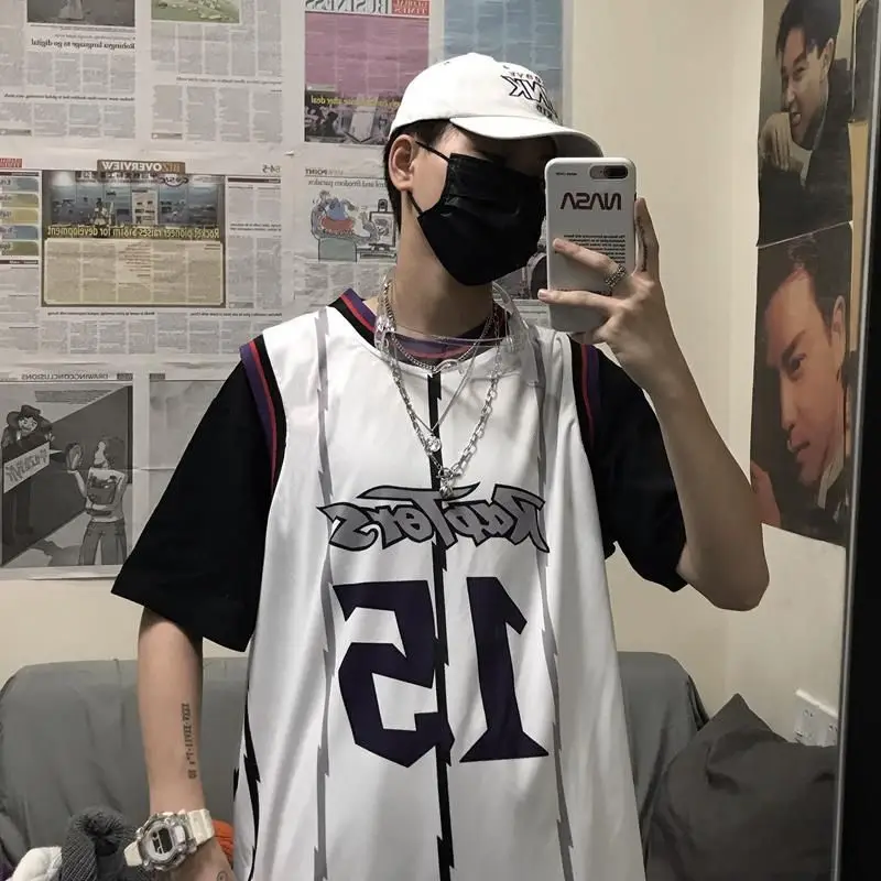Имитация двух частей Джерси Корейская Ретро хип-хоп свободная комбинированная Баскетбольная Униформа для мужчин и женщин футболка с коротким рукавом для влюбленных спортивный топ