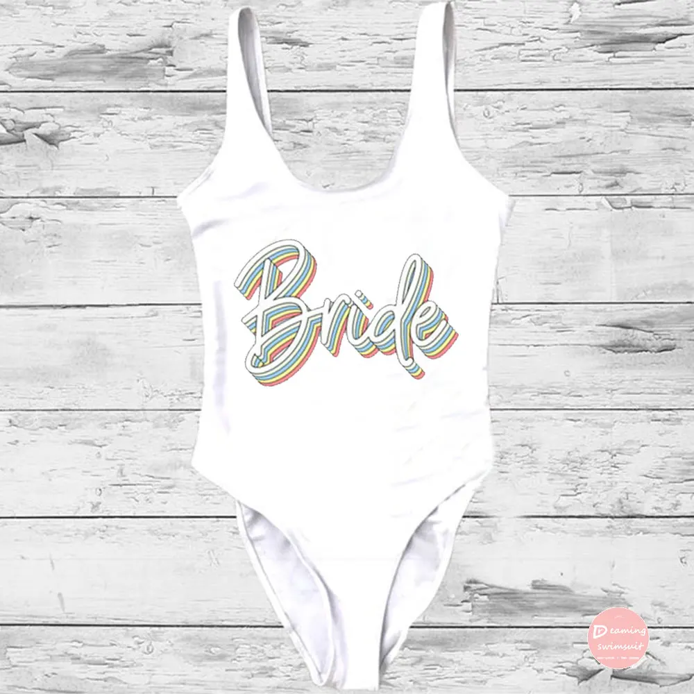 Цельный купальник для невесты и малышей, бикини с радужным принтом, женский сексуальный купальник пуш-ап, женская пляжная одежда, летние купальные костюмы с открытой спиной, 2021