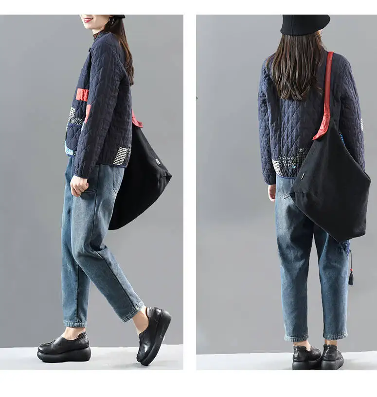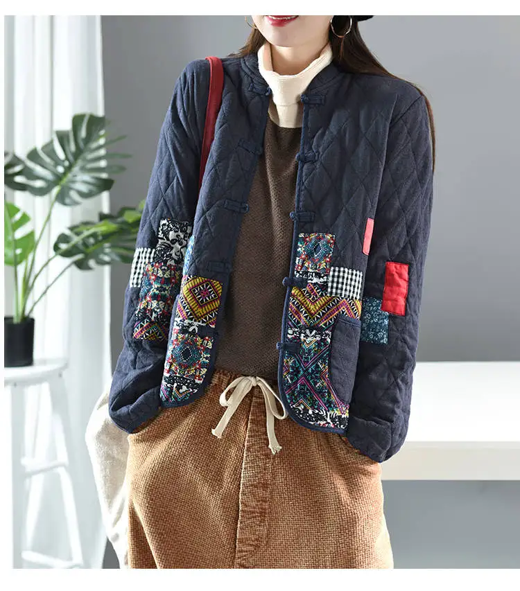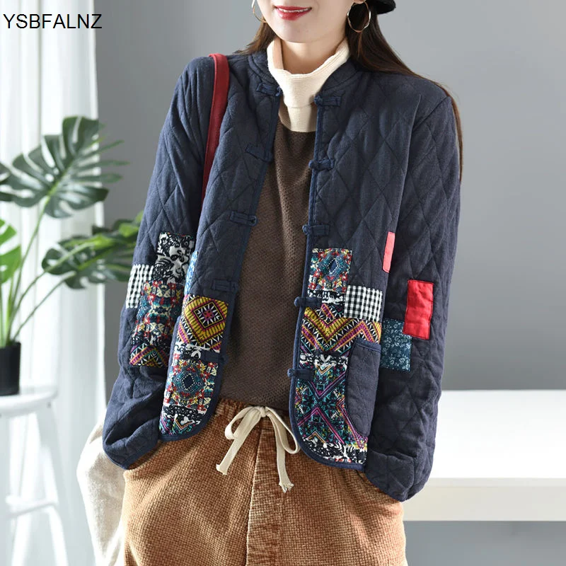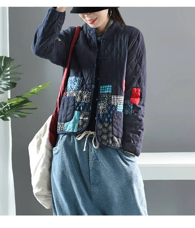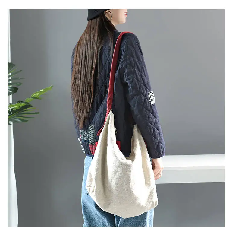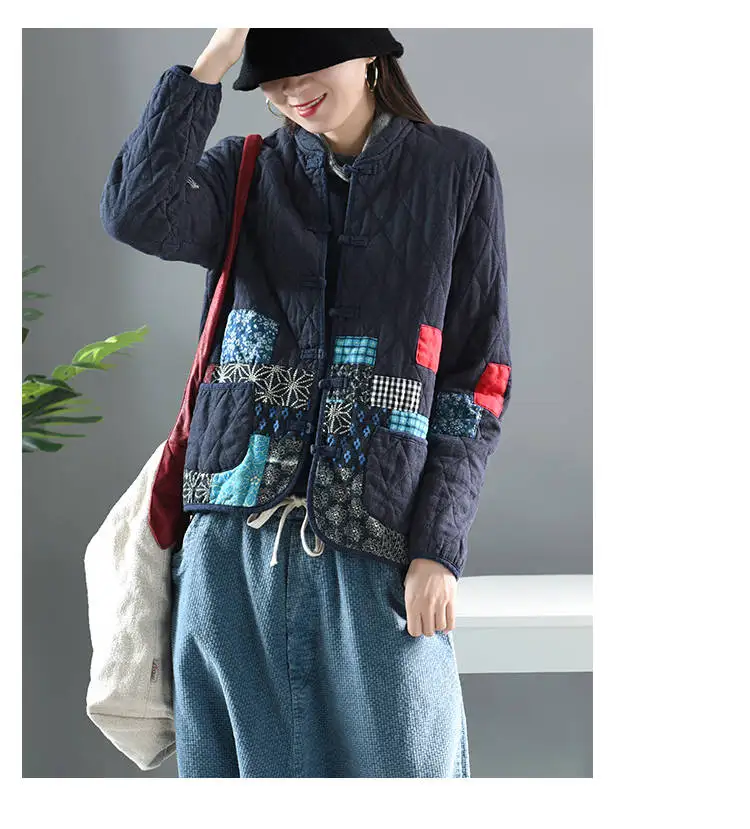 Женская короткая куртка в стиле ретро, однобортная хлопково-Льняная куртка составного кроя с длинными рукавами и подкладкой, осень-весна 2021
