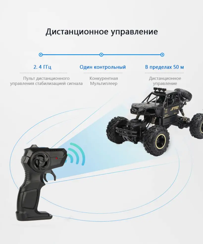 Радиотехнология 2,4 ГГц, диапазон управления может достигать 100 м. (Применимо только к грузовикам масштаба 1: 12/1: 14/1: 16)