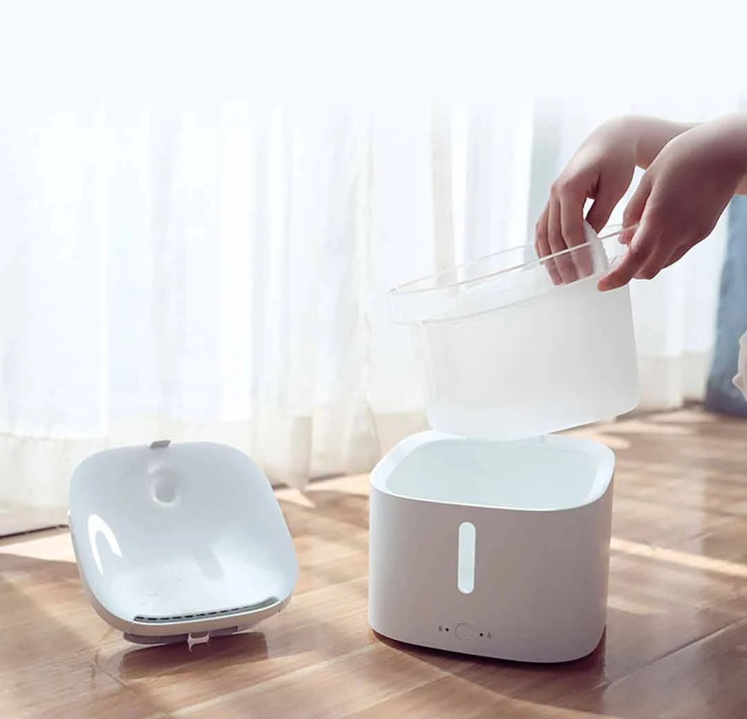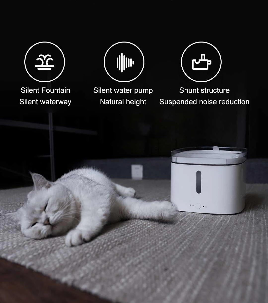 Емкость диспенсера воды составляет 2л, который может удовлетворить потребности взрослого кота в течение 4-7 дней. Верхняя крышка может хранить воду и обеспечивать небольшое количество аварийной питьевой воды, даже если питание выключено.