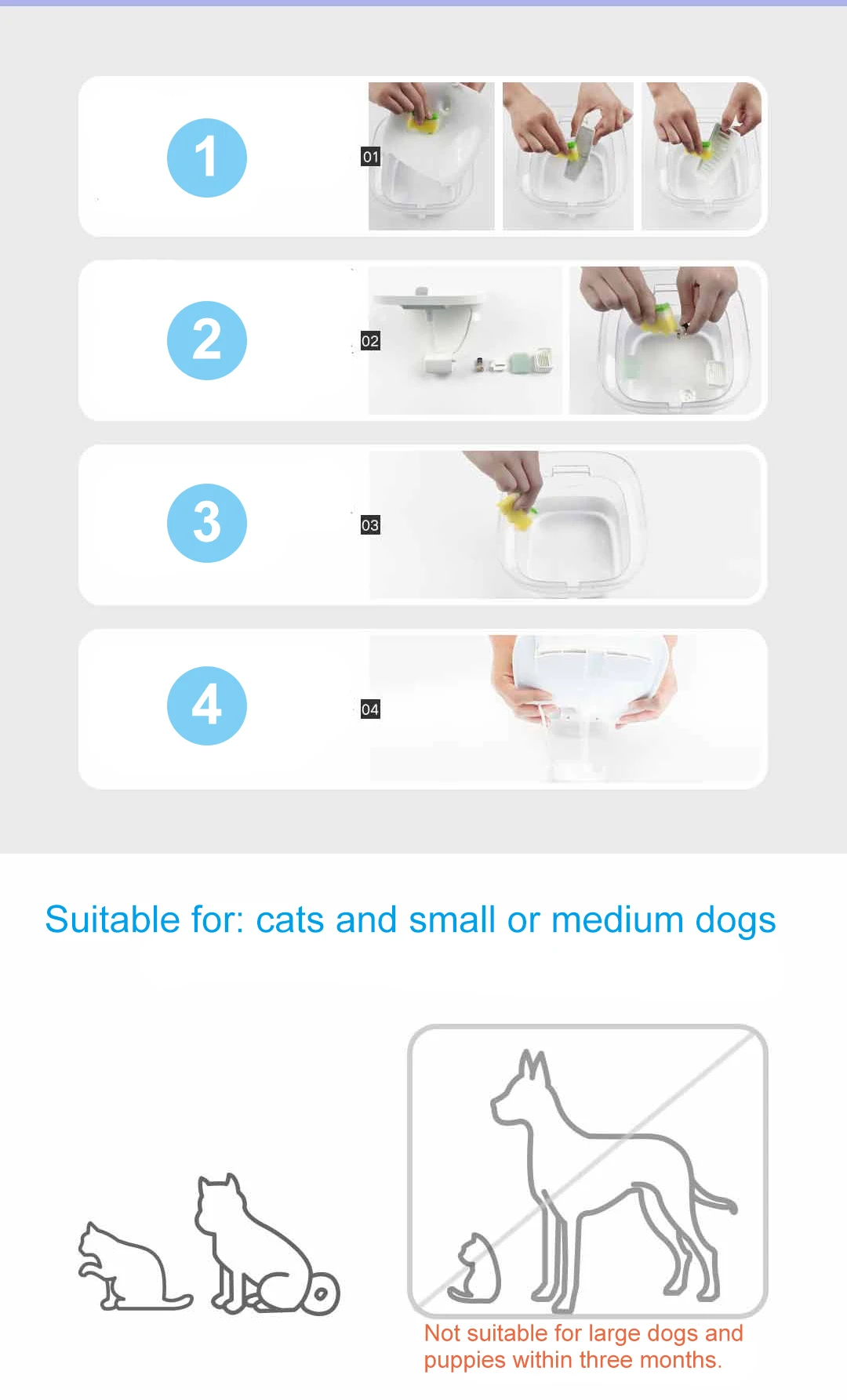 * Рекомендуется чистить не реже одного раза в неделю (включая резервуар для хранения воды, верхнюю крышку, фильтр-бак, фильтрующий элемент, водяной насос и фильтр для водяного насоса), И тщательно изменить воду, чтобы предотвратить аномальные феномены, такие как плохое качество воды или плохое отверстие воды, вызванное загрязнением, блокирующим резервуар фильтра. * При очистке не используйте горячую воду, особенно кипяток.* Весной и летом температура высокая. Пожалуйста, очистите резервуар для хранения воды, верхнюю крышку, фильтрующий элемент, губку фильтра водяного насоса, водяной насос и другие компоненты, чтобы избежать размножения комаров.* Рабочий шум всей машины составляет менее 30 дБ.* Функция голосового управления должна быть реализована с динамиком Xiaoai и другим оборудованием, а Сопутствующее оборудование связи должно быть приобретено отдельно.* Согласно данным теста, 5 кг Взрослый кот может пить около 200 мл в течение одного дня, а кумулятивный расход воды в течение семи дней составляет около 1400 мл. В процессе фактического использования, из-за изменения объективной среды или разницы в типе домашних животных, возрасте, здоровье и привычках поведения, могут быть ошибки.* Подходит для взрослых собак с высотой плеч ниже 40 см.