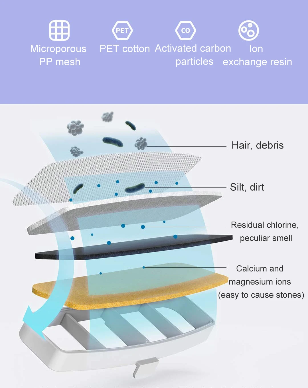 Очень простая структура, разделение воды и электричества. Простая промывка без нагрузки.Пищевой материал для хранения воды. Позвольте домашним животным пить воду более безопасно.