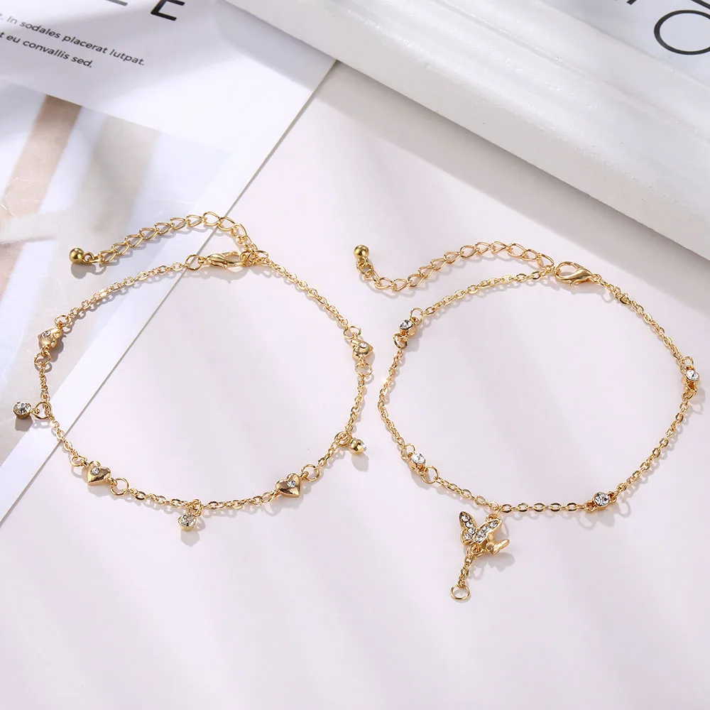 Женские пляжные ножные браслеты ZOVOLI, летние богемные стразы в форме Креста, Золотая простая цепочка с бабочкой