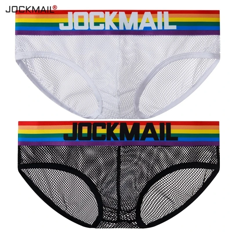 Трусы-брифы Jockmail мужские, пикантное прозрачное Сетчатое нижнее белье радужных цветов, дышащие шорты-слипы
