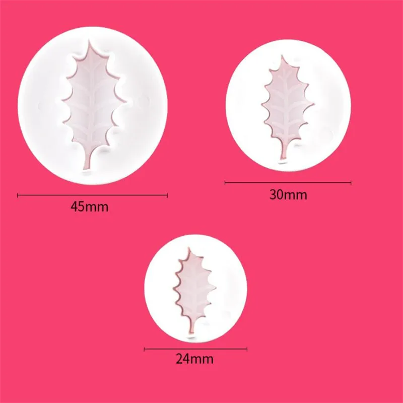 3 шт.компл. 3D Рождественский лист Холли Листья печенье Плунжер рез...