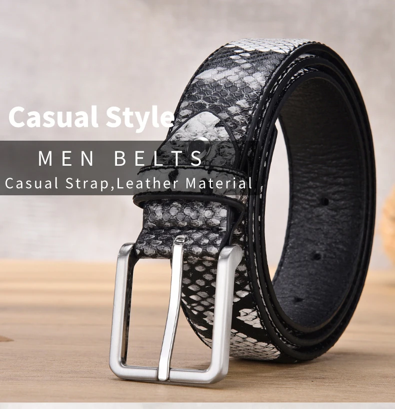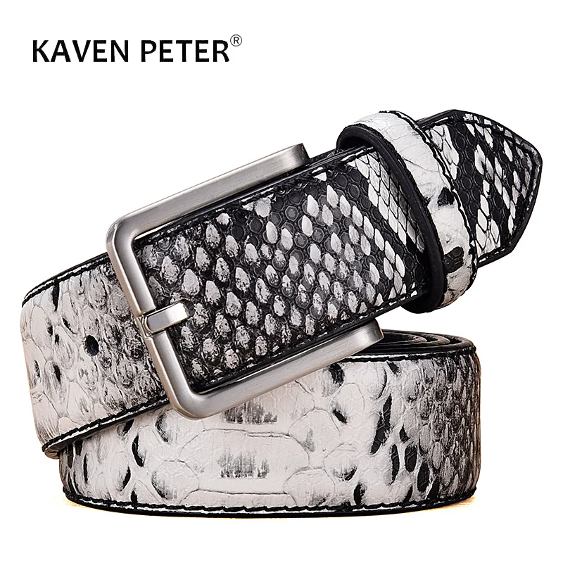 Модные мужские ремни, Роскошный дизайнерский мужской ремень со змеиным узором, повседневные аксессуары, ковбойский кожаный ремень в западном стиле с пряжкой, металл: