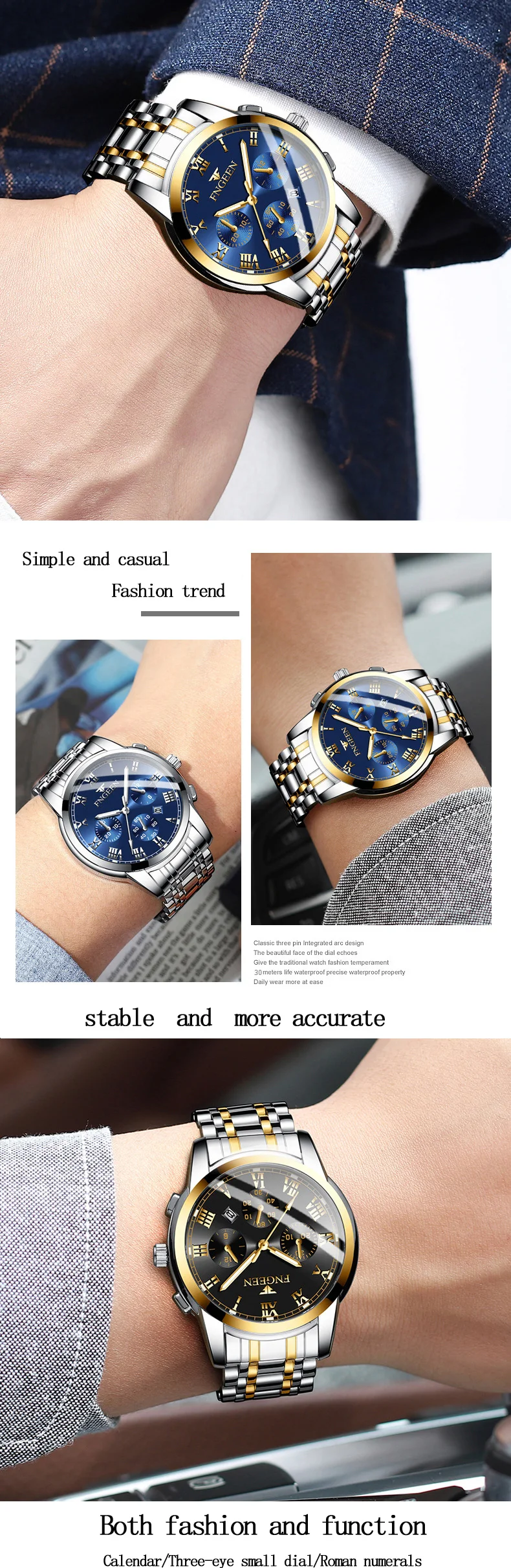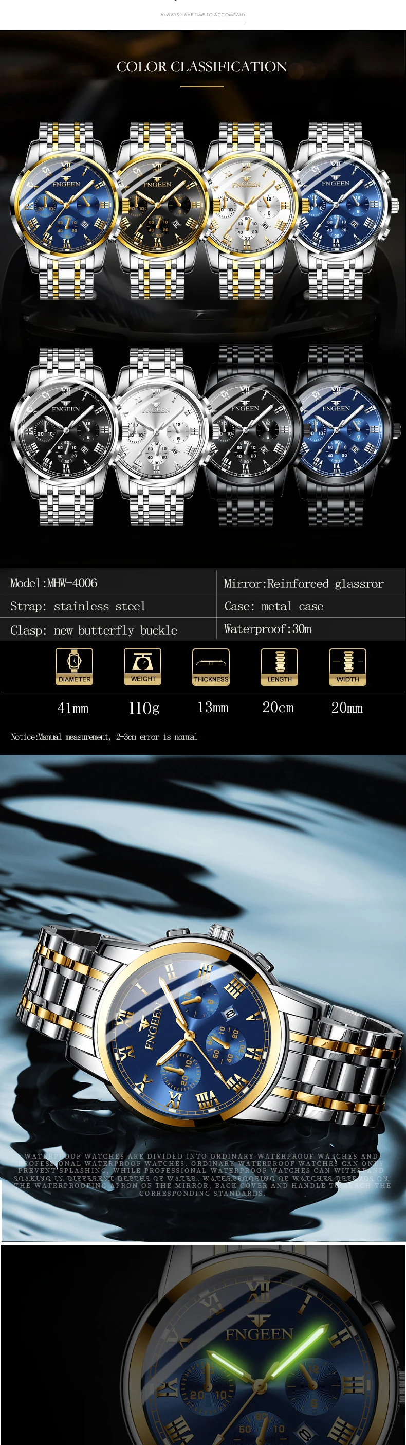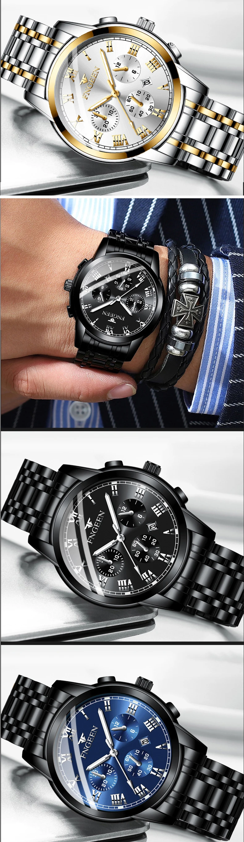 Мужские автоматические механические часы FNGEEN 4006, повседневные деловые часы из нержавеющей стали, мужские водонепроницаемые наручные часы с календарем часы муржские наручные