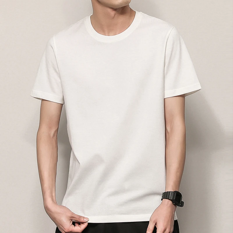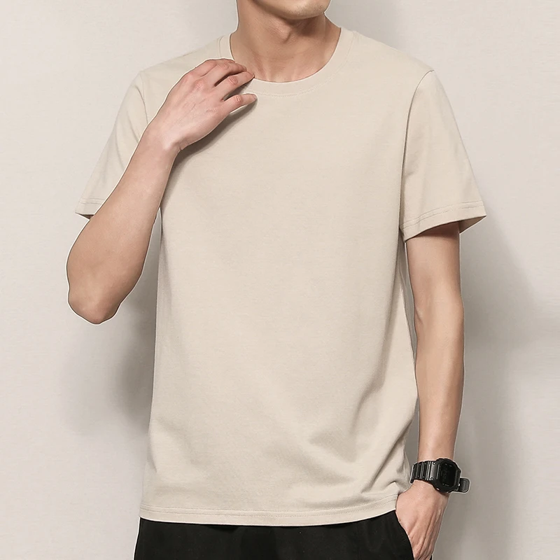 Футболка мужская из натурального хлопка, короткий рукав, свободная тенниска, однотонная майка карамельных цветов, лето