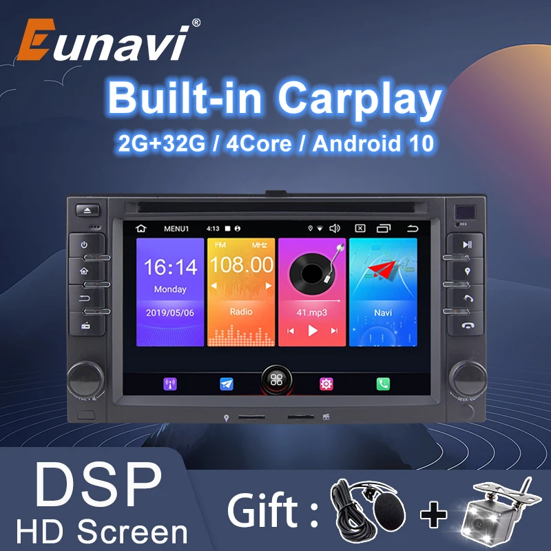 Автомобильный DVD-проигрыватель Eunavi, Android 10, 2 Din, GPS, аудио, DSP, для KIA SORENTO MAGENTIS, SPORTAGE, MORNING CEED, RIO CERATO 2005-2010