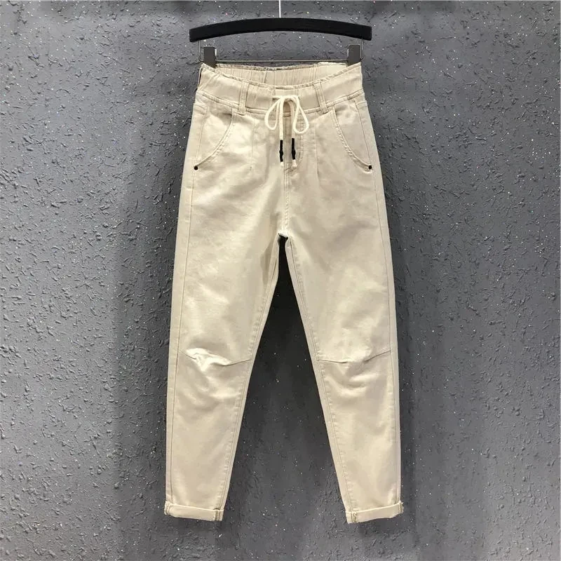 Джинсы женские в европейском стиле, тонкие повседневные штаны из хл...