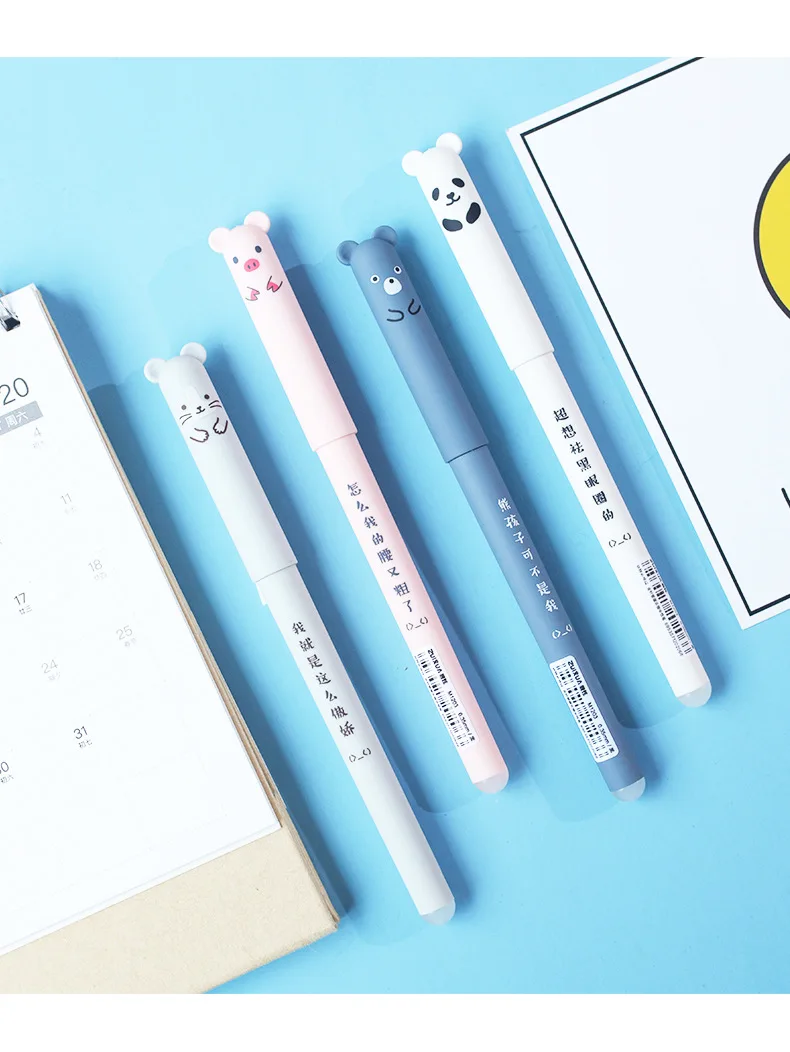 Yisuremia Новый 4 шт./компл. Kawaii Свинья с рисунком кошки медведя Мышь со стирающимися чернилами гелевая ручка студентов пишущие ручки 0,35 мм синего цвета с черными чернилами школьные канцелярские принадлежности