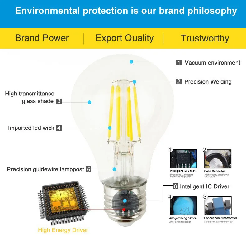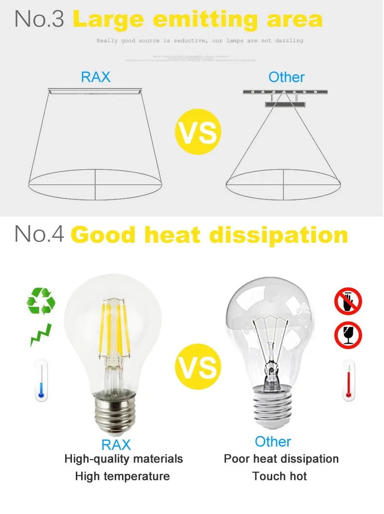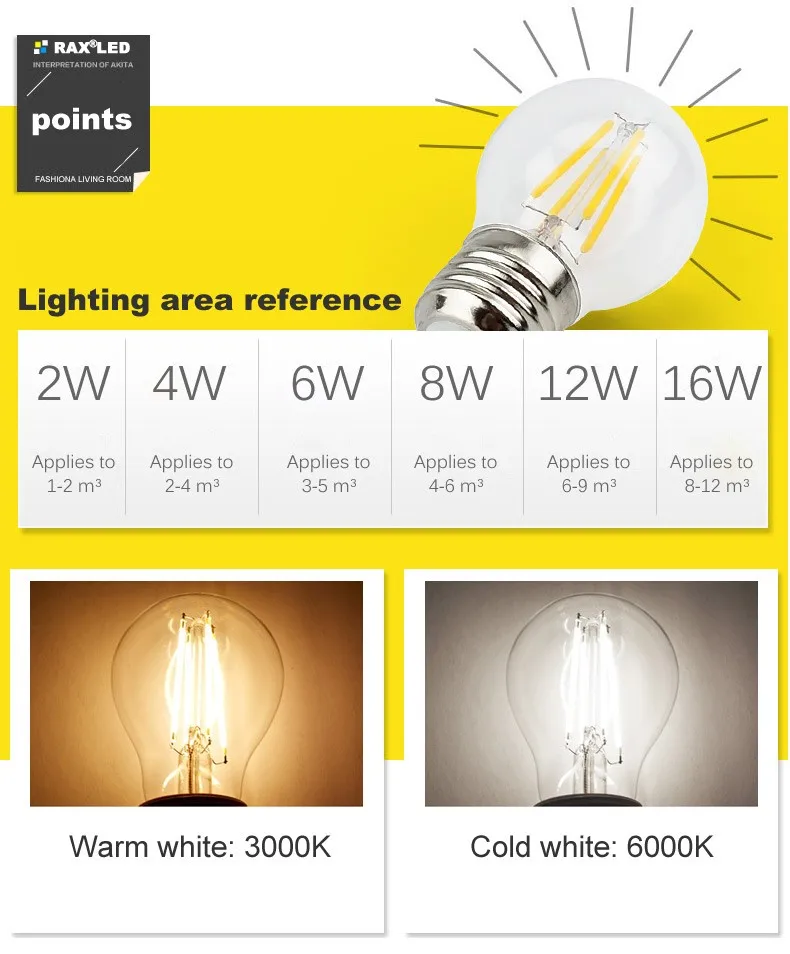 Особенности: Низкое потребление и энергосбережение Светодиодный светильник накаливания с длительным сроком службы Инновационная лампа-люстра, возврат к древним, нанесение на бар, вечерняя вечеринка, украшение Характеристики: Название: светодиодный светильник в стиле ретро Тип цоколя: E27 E14 Модель: G45 C35 C35L Цветовая температура: теплый белый 2700-3200K; Холодный белый: 6000-6500K Напряжение: 220 В CRI: 90Ra (подходит для окна и пятизвездочного отеля) Угол луча: 360 ° Рабочая температура: от-20 ° до + 40 ° Рабочая влажность: 20%-85% RH без конденсации Температура хранения: от-20 ° до + 70 ° Влажность хранения: 10%-95% относительной влажности Материал: стекло Средняя продолжительность жизни:> 80000 часов Применение: Подходит для отеля, столовой, конференц-зала, гостиной, выставочного зала, магазина, коридора, телефонной будки, студии и выставки и т. д. Развлекательное освещение, архитектурное освещение, городское благоустройство, частичное освещение, декоративное освещение дома и в общественных местах.