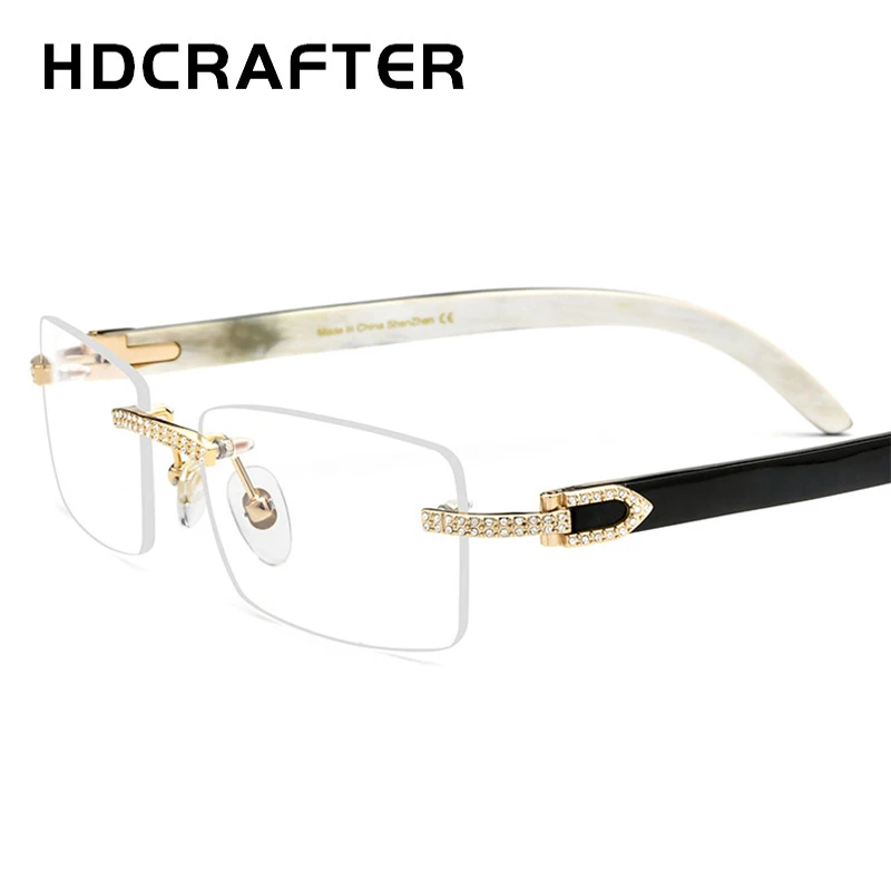 HDCRAFTER Для мужчин Элитный бренд Натуральные Рога Rimless алмазные очки рамки Для женщин Для мужчин оптические очки с диоптриями Квадратные Солнцезащитные очки, солнечные очки