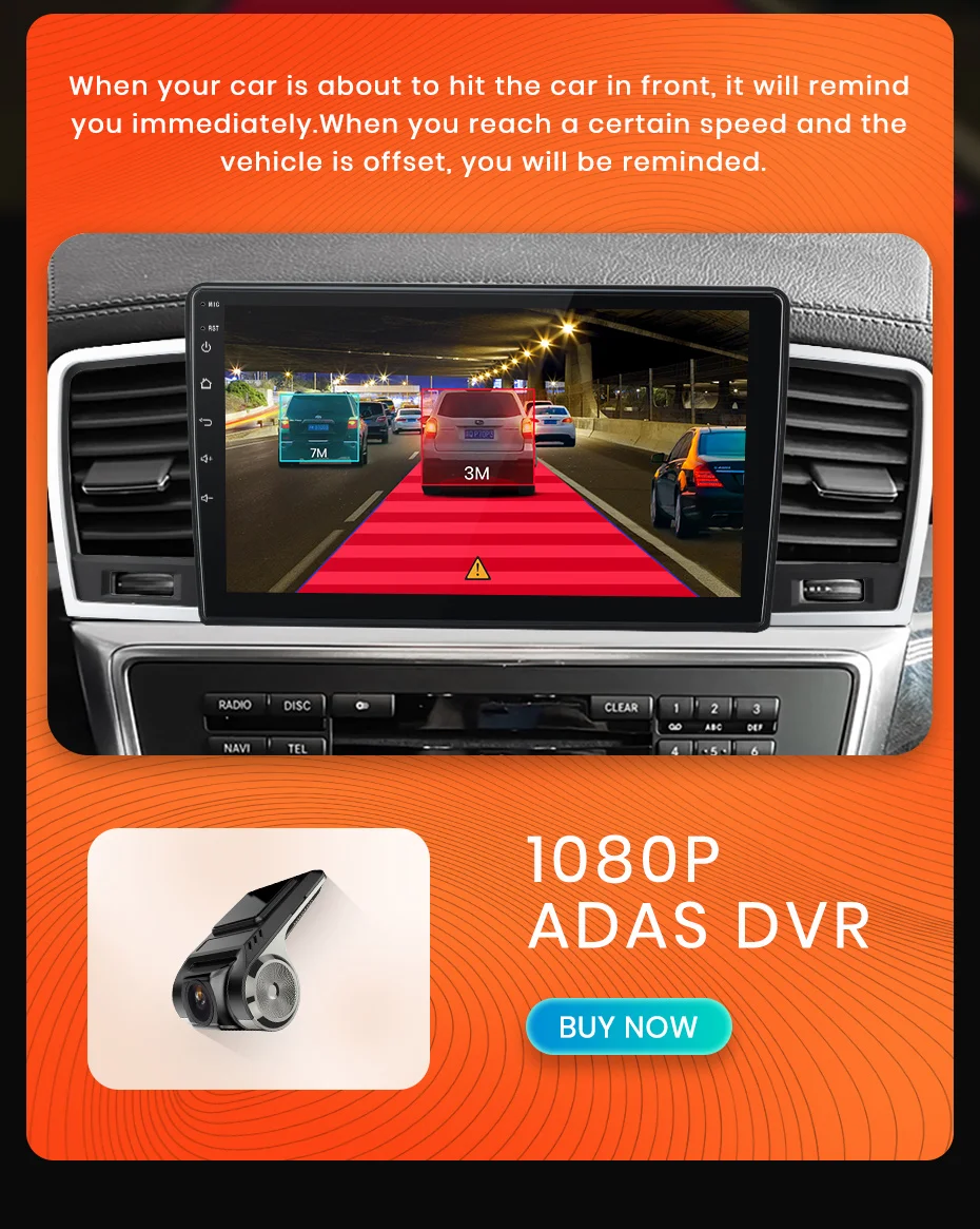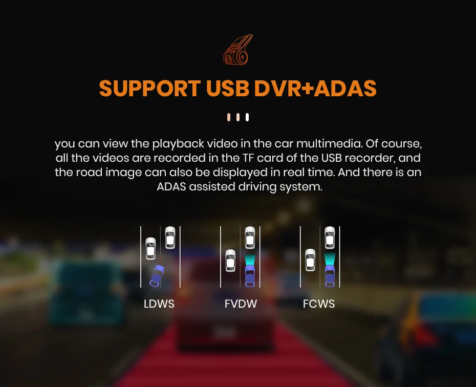> С столкновения Предупреждение Системы, передняя машина отправления Предупреждение, он обеспечивает вашу безопасность в дороге.> После установки этот видеорегистратор может записывать видео Переднего Вида Автомобиля, включая возможные аварии, обеспечивая безопасность вождения.