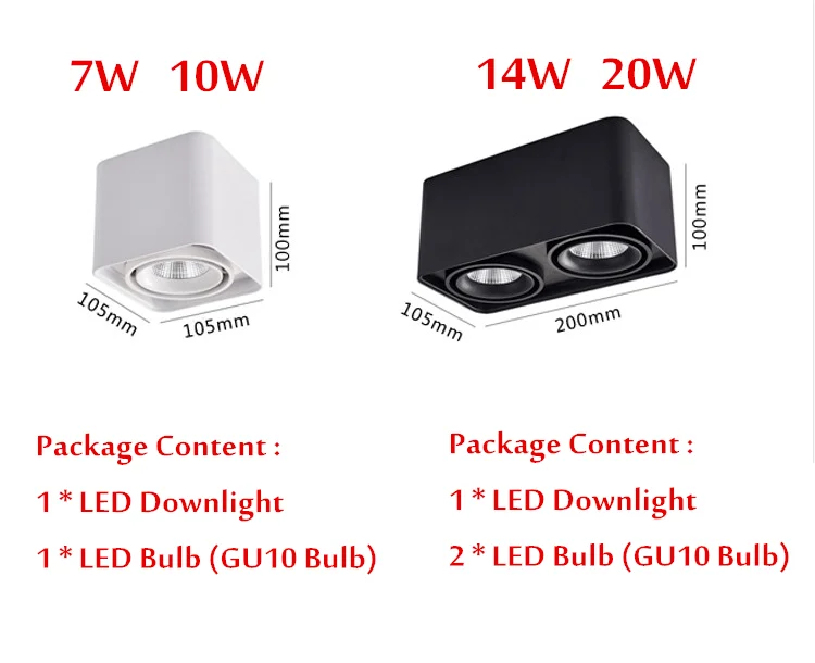 С регулируемой яркостью с поверхностным монтажом светодиодный вниз светильник + сменный GU10 светодиодный лампы 7 Вт 10 Вт 14 Вт 20 Вт квадратный светодиодный потолочный точечный светильник