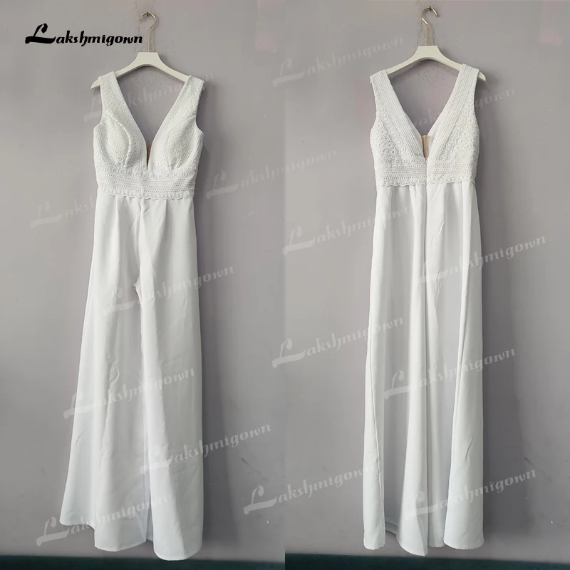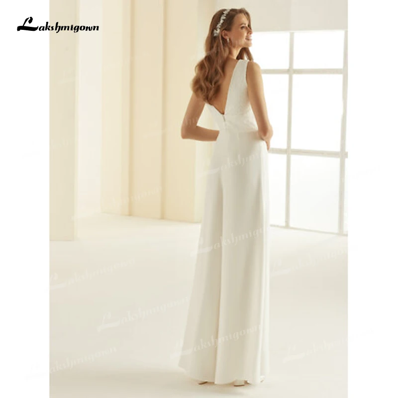 Женский Свадебный комбинезон, кружевной топ с глубоким V-образным вырезом, сдержанный Свадебный костюм, свадебные платья с открытой спиной, 2022
