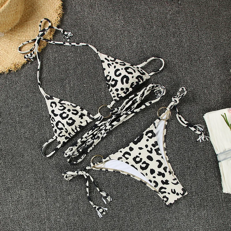 Купальник-бикини 2021, женский сексуальный леопардовый бандажный купальник с вырезами, купальные костюмы, летняя бразильская пляжная одежда из двух частей