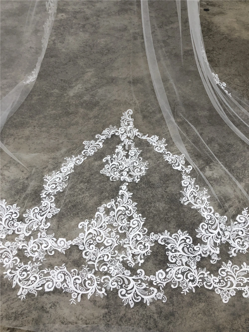 Двухслойная свадебная фата, свадебная фата с кружевной аппликацией ...