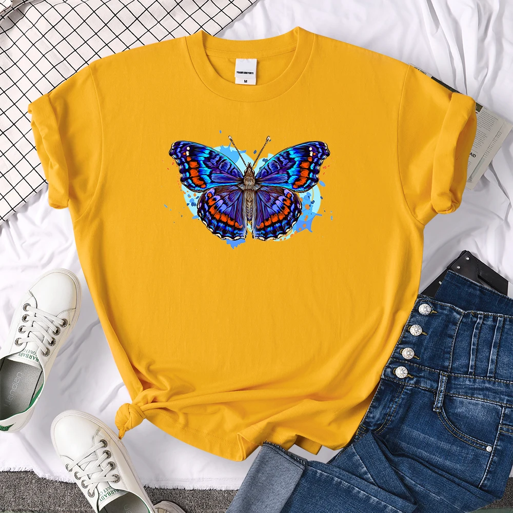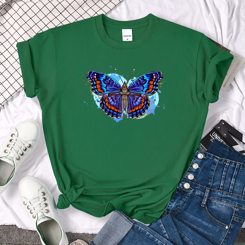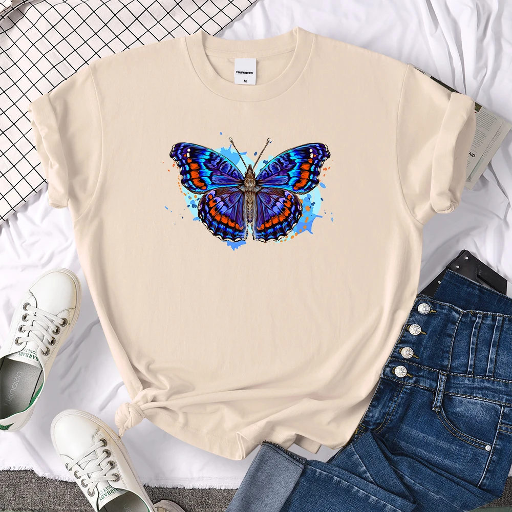Уличная мода, стильная брендовая одежда с принтом бабочек, брендовые топы с круглым вырезом, летние модные футболки, повседневные женские футболки оверсайз