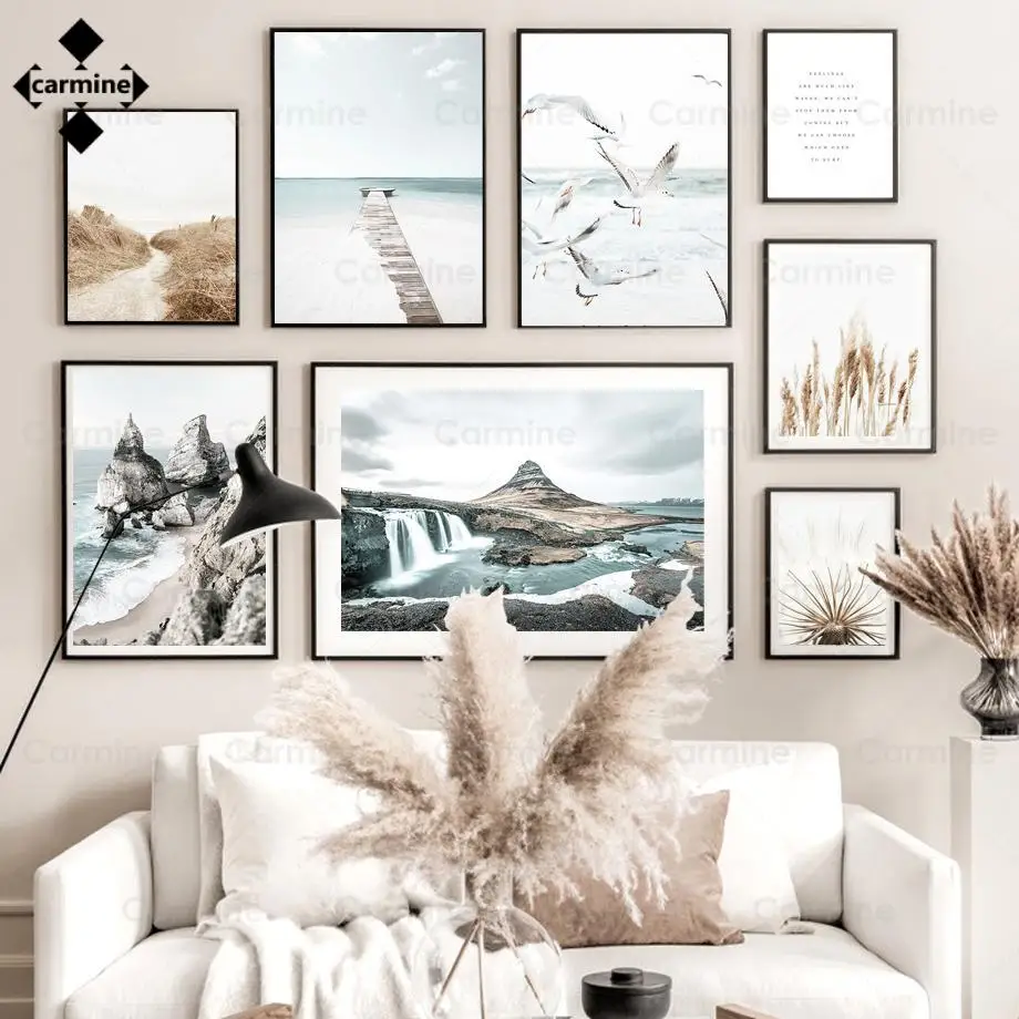 Настенный постер с изображением Морского Пейзажа и скалы, Настенная картина в скандинавском стиле с изображением одуванчика, водопада, холст для домашнего интерьера, без рамки