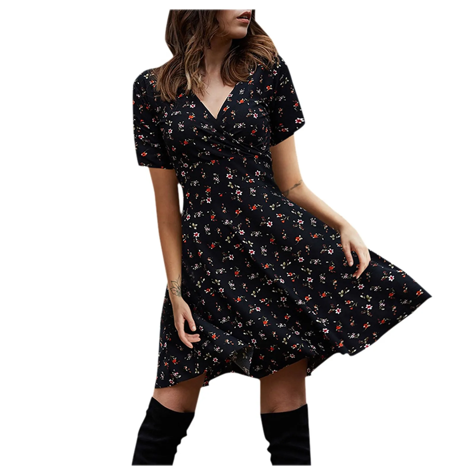 Женское Повседневное платье с V-образным вырезом и коротким рукавом