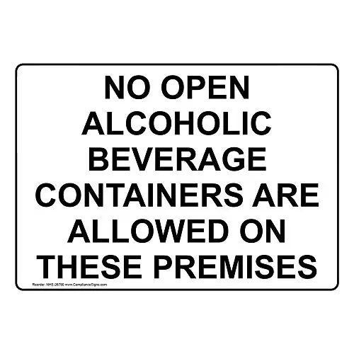 Не открываются контейнеры для спиртовых напитков со знаком, 10x7 дюймов пластик для спирталекарстворужия, Сделано в США Co