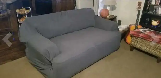 Это было легко надеть на диван. Цвет был именно таким, как я ожидал. Он в основном остается на месте с небольшой морщиной, когда он был включен (я попробовал оставить это на моей фотографии, чтобы вы могли знать, что ожидать). Честно говоря, есть причина, по которой мы покрываем диван, а покрытие дивана значительно Улучшено по сравнению с тем, что под ним. Это также намного холоднее, чем оригинальное покрытие из искусственной кожи, поэтому я настоятельно рекомендую его для лета.
