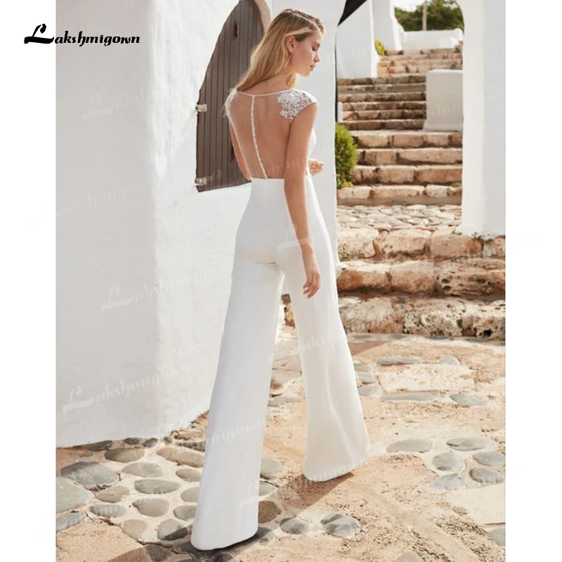 Кружевные комбинезоны с V-образным вырезом, свадебные платья со съе...