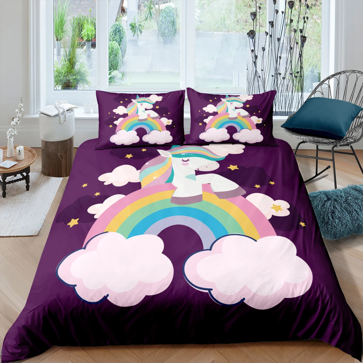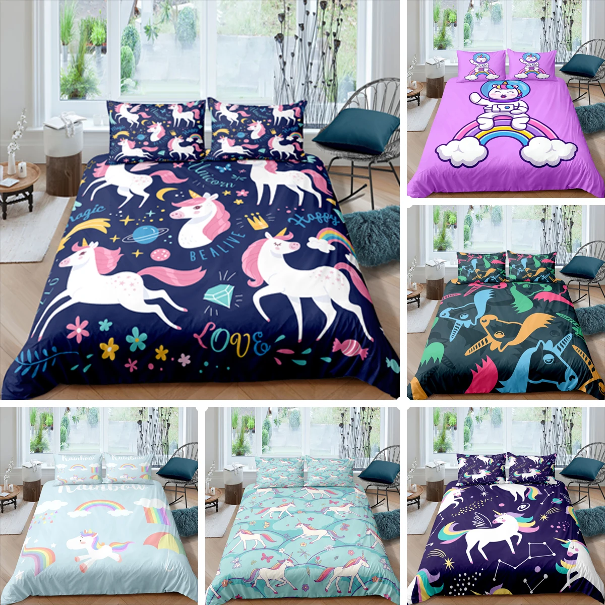 Мультфильмы милый единорог Радуга Постельное белье милые 23 шт. Queen King Размеры домашний текстиль девушки одеяло для мальчика набор пододеяльников
