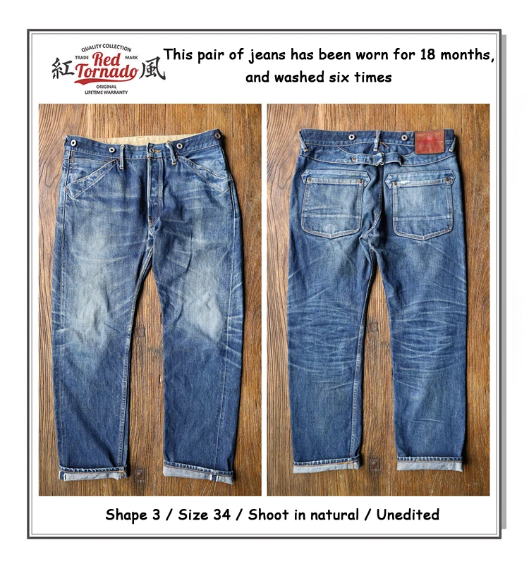 Красный Торнадо кузнеца с пряжкой сзади джинсы 16,5 oz сырой кромка джинсы прямые