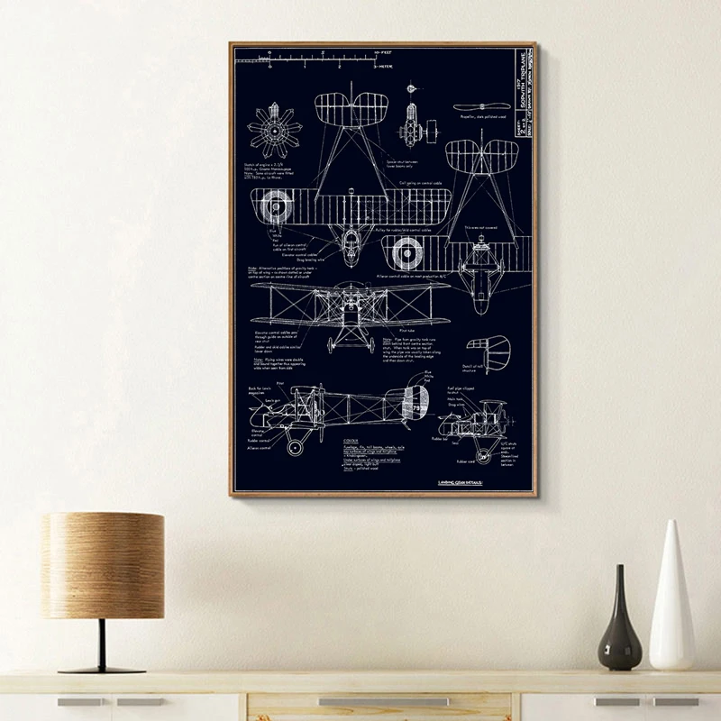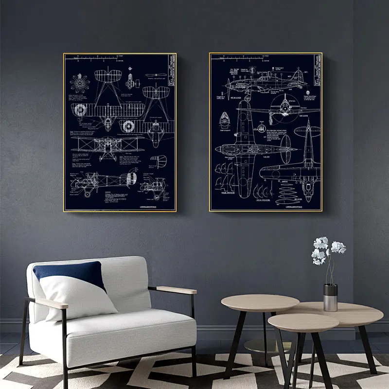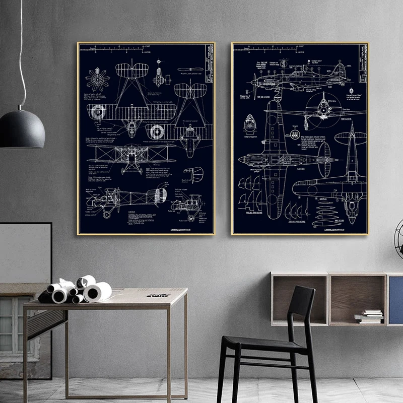 Современный черно-белый настенный плакат самолет промышленные рисунки схема картины на холсте картины для интерьера домашний декор