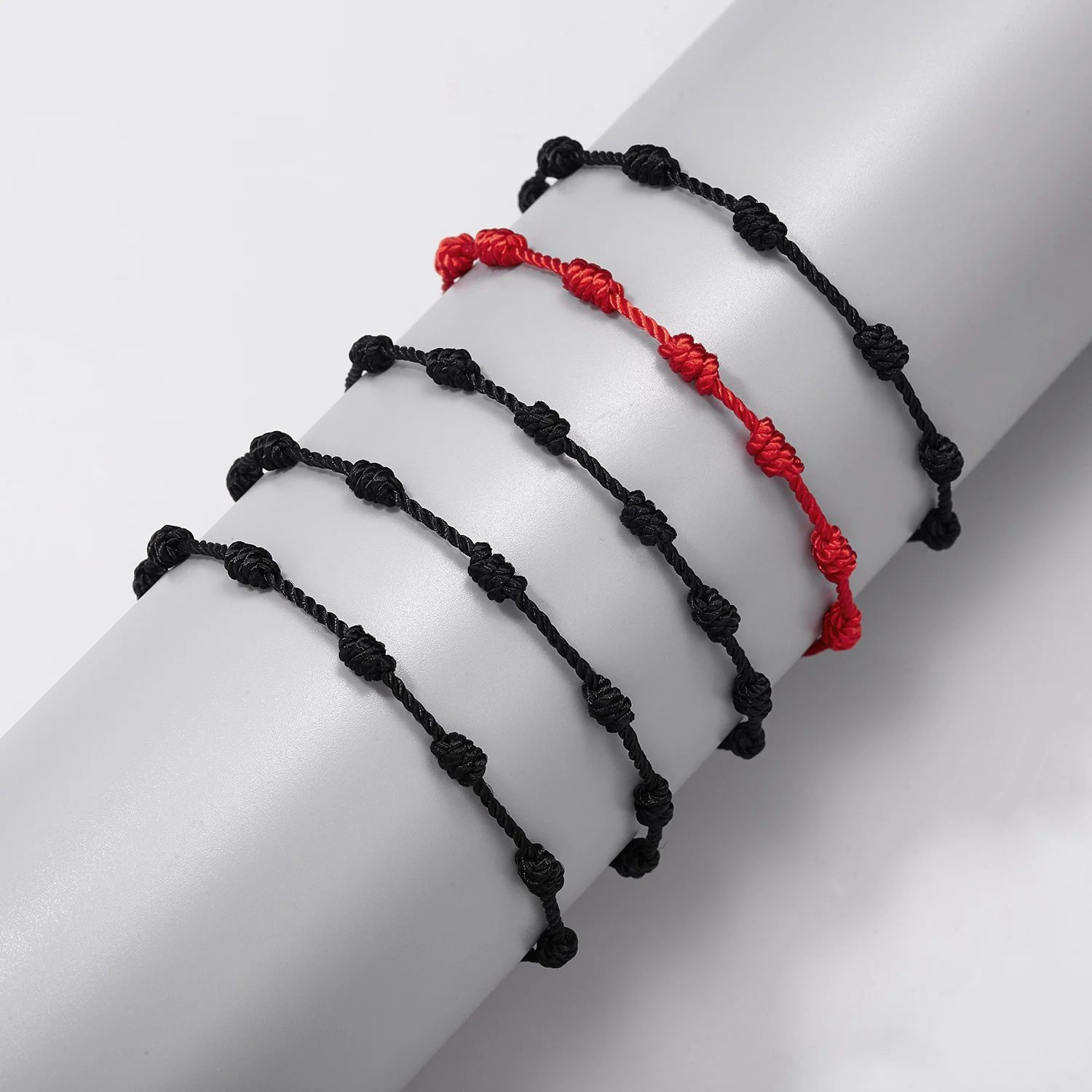 Ручной работы Lucky Red String браслеты Плетеные 7 узлов защита Lucky Fate амулет и дружба Веревка Браслет цепочка женский подарок
