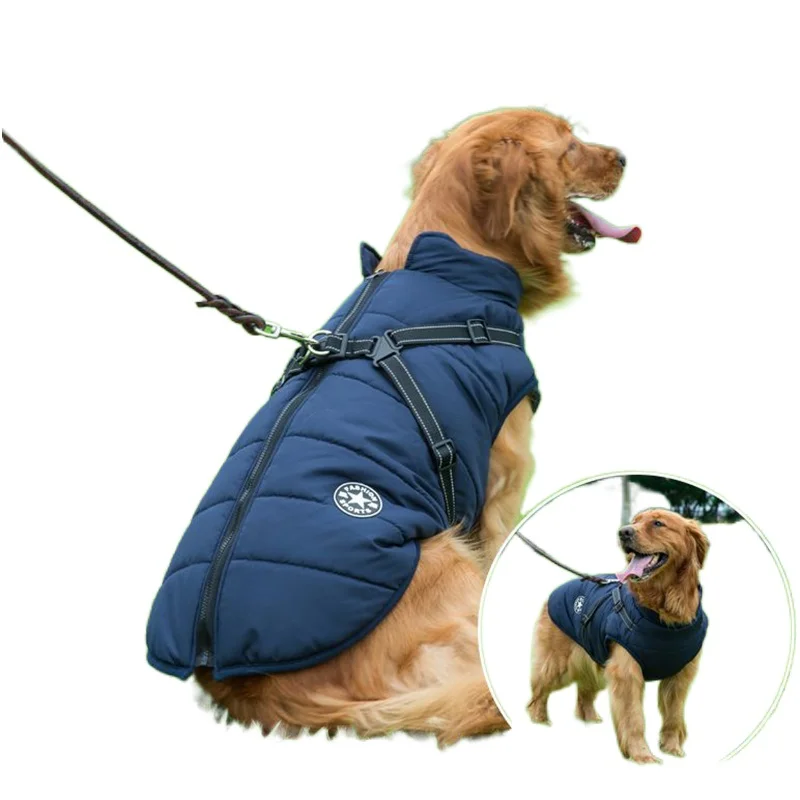 Большие шлейка для собаки домашнего животного пальто Зимняя теплая куртка одежда для собак Лабрадор водонепроницаемое пальто для больших собак чихуахуа Французский бульдог наряды
