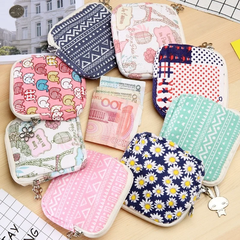 Тканевый материал, мультяшный Милый принт, на молнии, Детский кошелек унисекс, креативный тканевый мешок для хранения, гигиенический хлопок, сумка 202