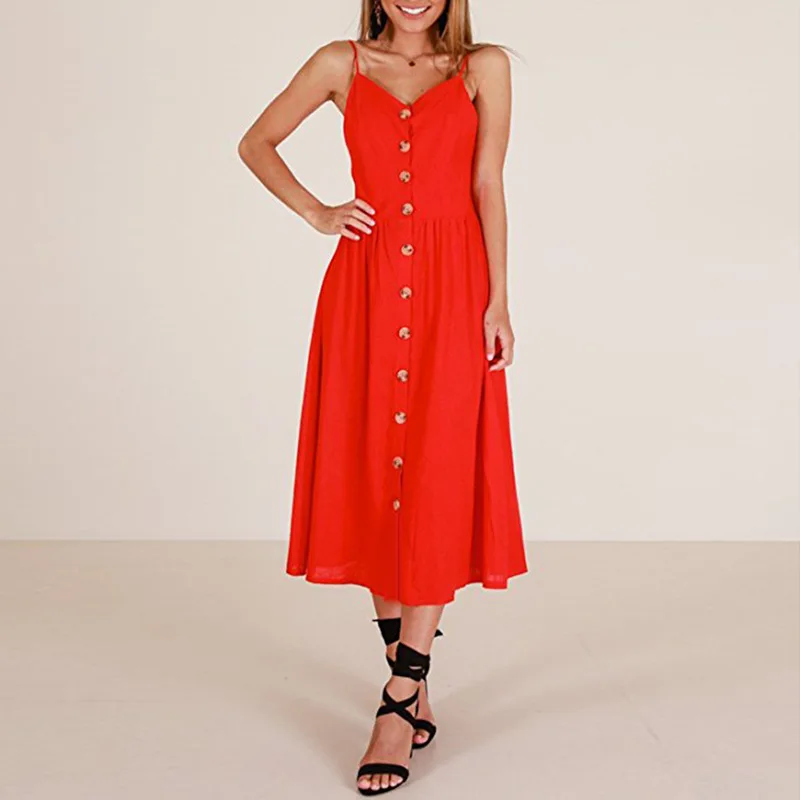Женское винтажное платье миди на пуговицах, повседневное пляжное пл...