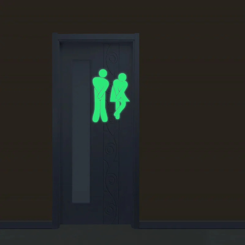 Наклейка для унитаза светящаяся, наклейка на дверь в ванную комнату, забавная мультяшная наклейка для самостоятельной сборки стен, индикаторная табличка
