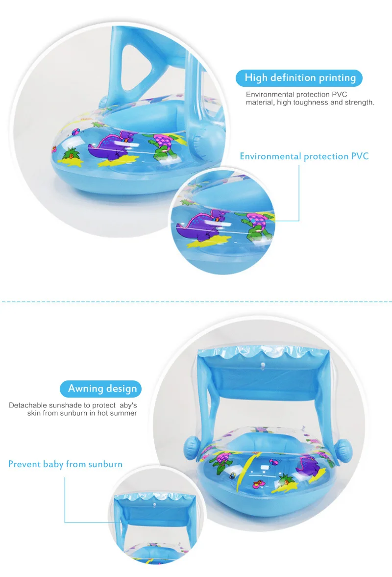 Плавательное кольцо, надувной поплавок для малышей, детский бассейн для плавания с прочным безопасным материалом, навес, регулируемый круглый замок, стабильный