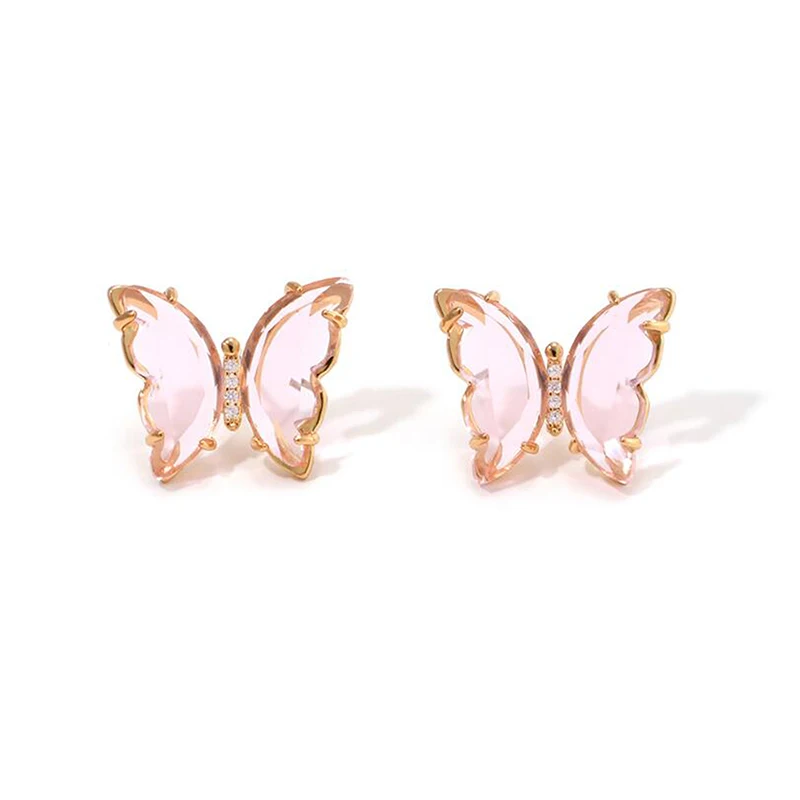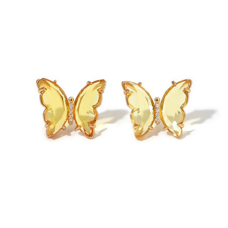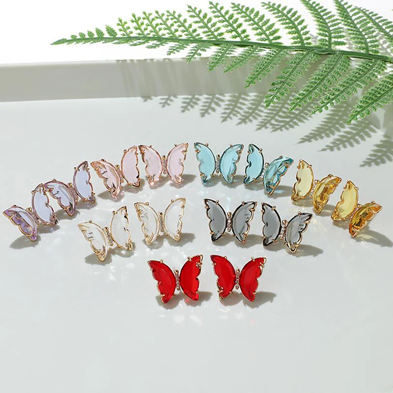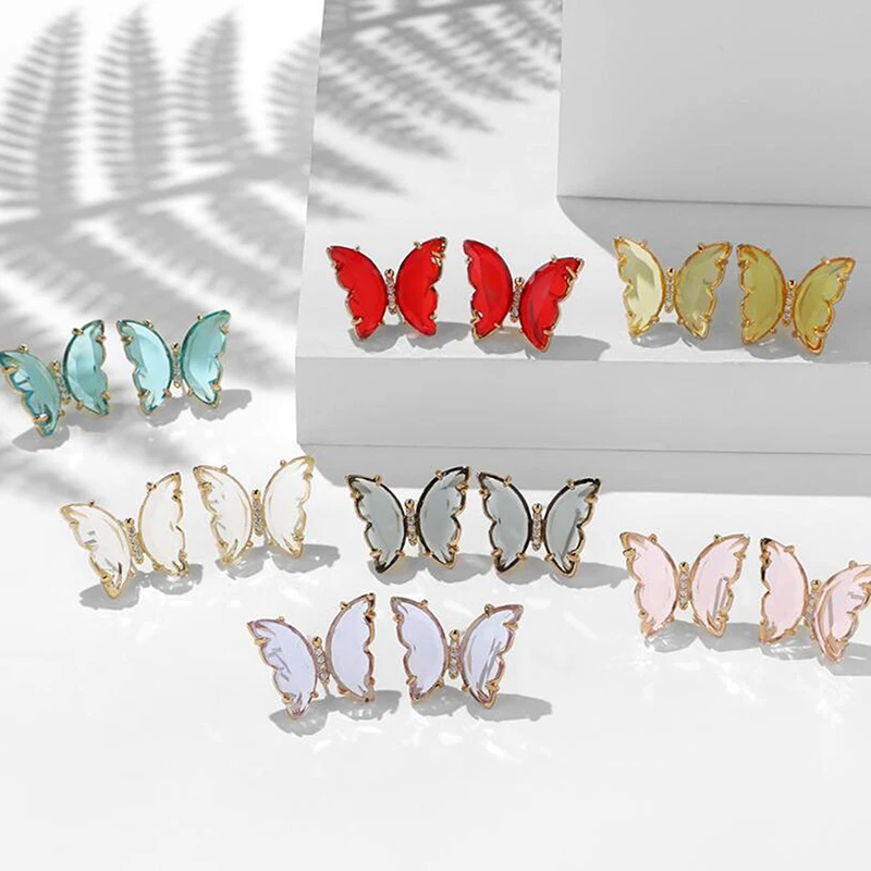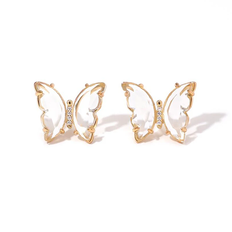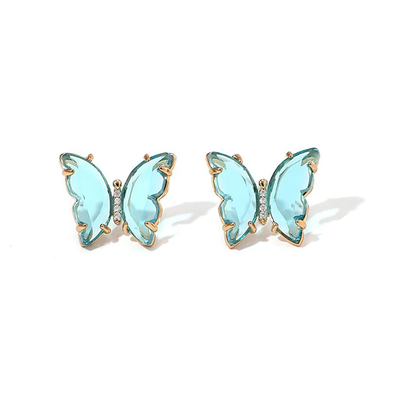 Прозрачные стеклянные серьги-гвоздики в виде бабочки, летние аксессуары для ушей, ювелирные изделия, подарок