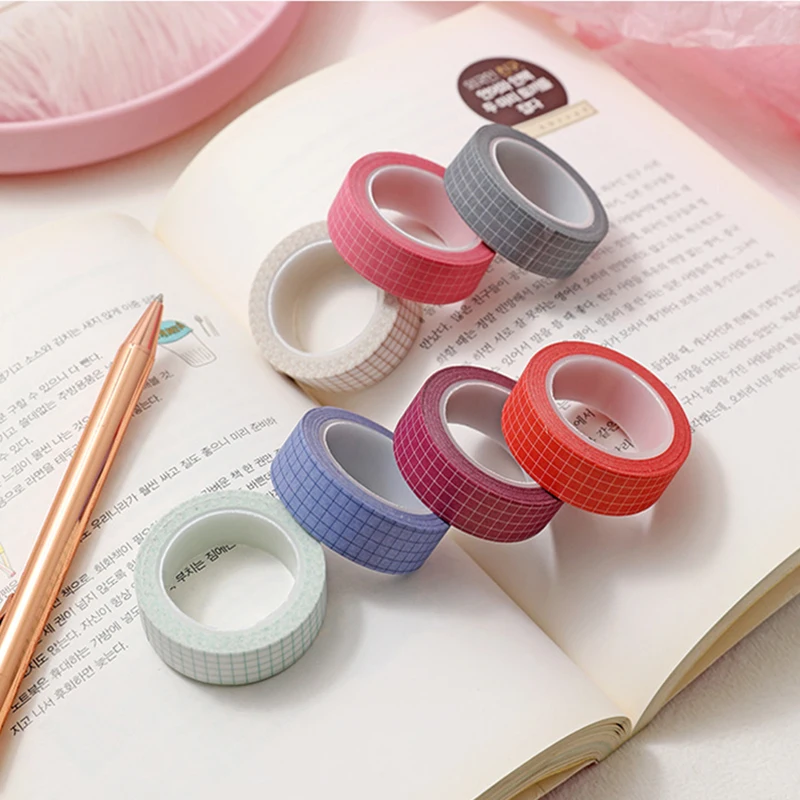 Однотонная клейкая лента, милая клейкая лента в клетку, декоративна...