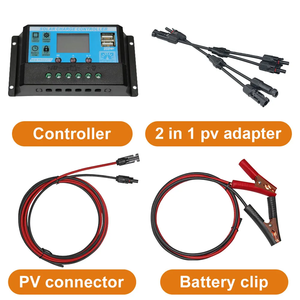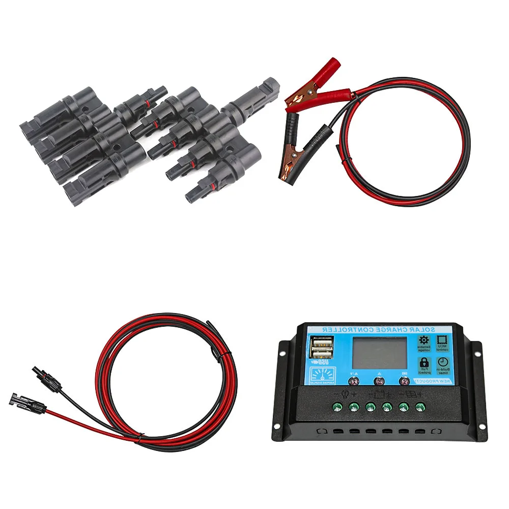 Комплект аксессуаров для солнечной панели 12 В, 100 Вт, 200 Вт, 300 Вт, 400 Вт, 500 Вт, гибкий фотоконтроллер и кабель для аккумулятора