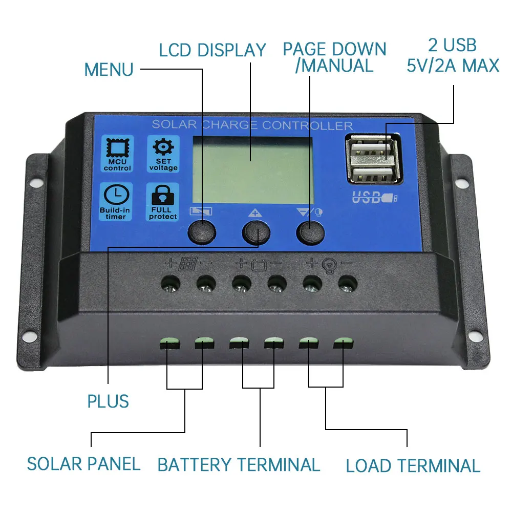 Посылка:1*12V/24V 10A PWM блок управления установкой на солнечной батарее1 * Удлинительный кабель 13AWG 3 м длина1 * кабель с зажимом для аккумулятора 13AWG длина 1 м