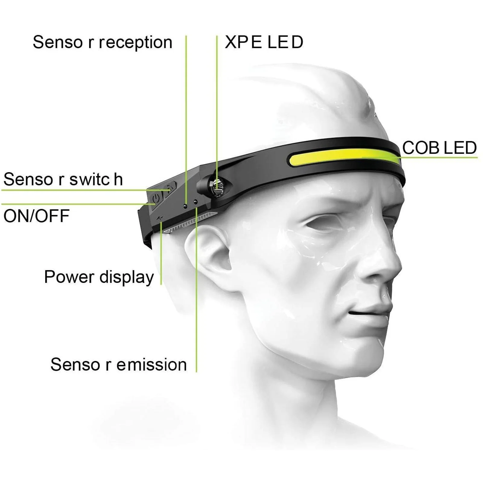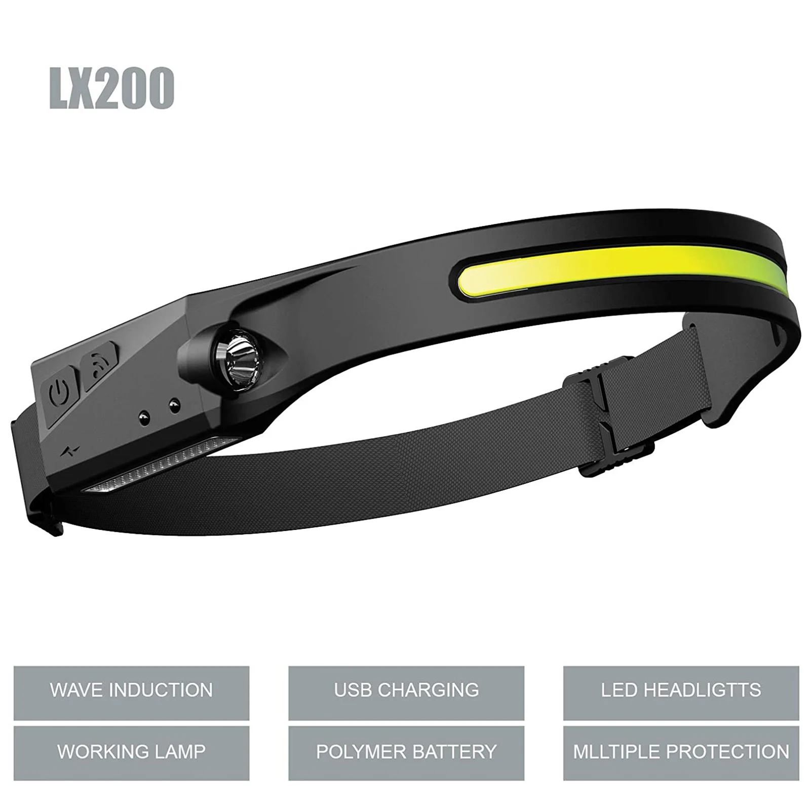 Зарядка через USB фары Водонепроницаемый открытый головной светильник полный визуальный дизайн волна Сенсор широкий угол обзора-широкий междугородной безопасный светильник