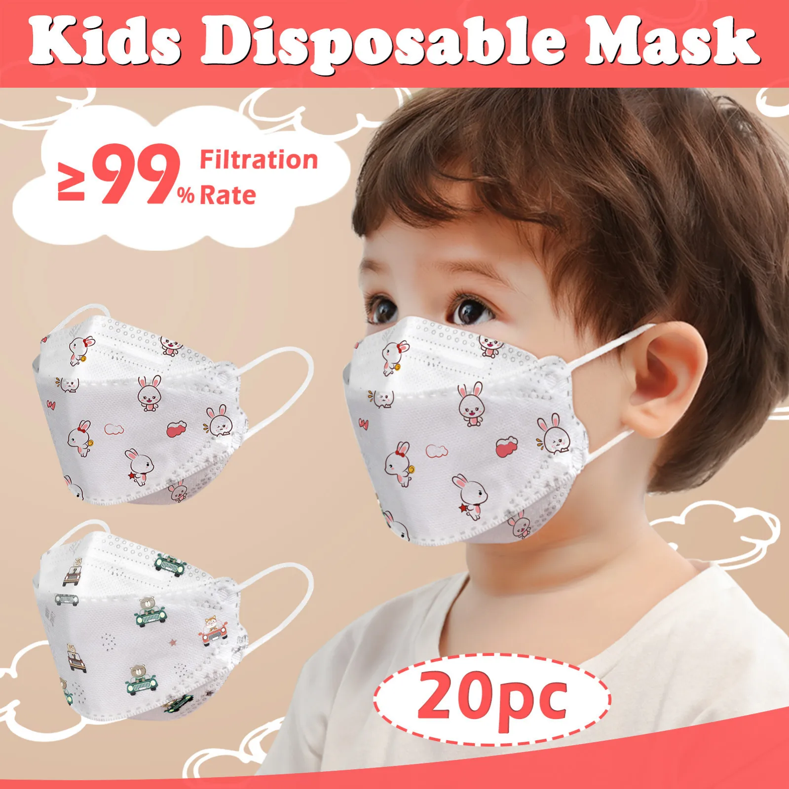 1020 шт. в упаковке, KN95 маска Mascarillas подходит 4-12years дети рыбы из нетканого материала предупреждения маски для лица фильтр FFP2 маска респиратор маске