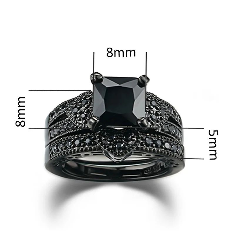 Набор колец из нержавеющей стали с фианитом для мужчин и женщин, модные двухрядные ювелирные украшения в виде черного сердца с кристаллами, свадебная бижутерия