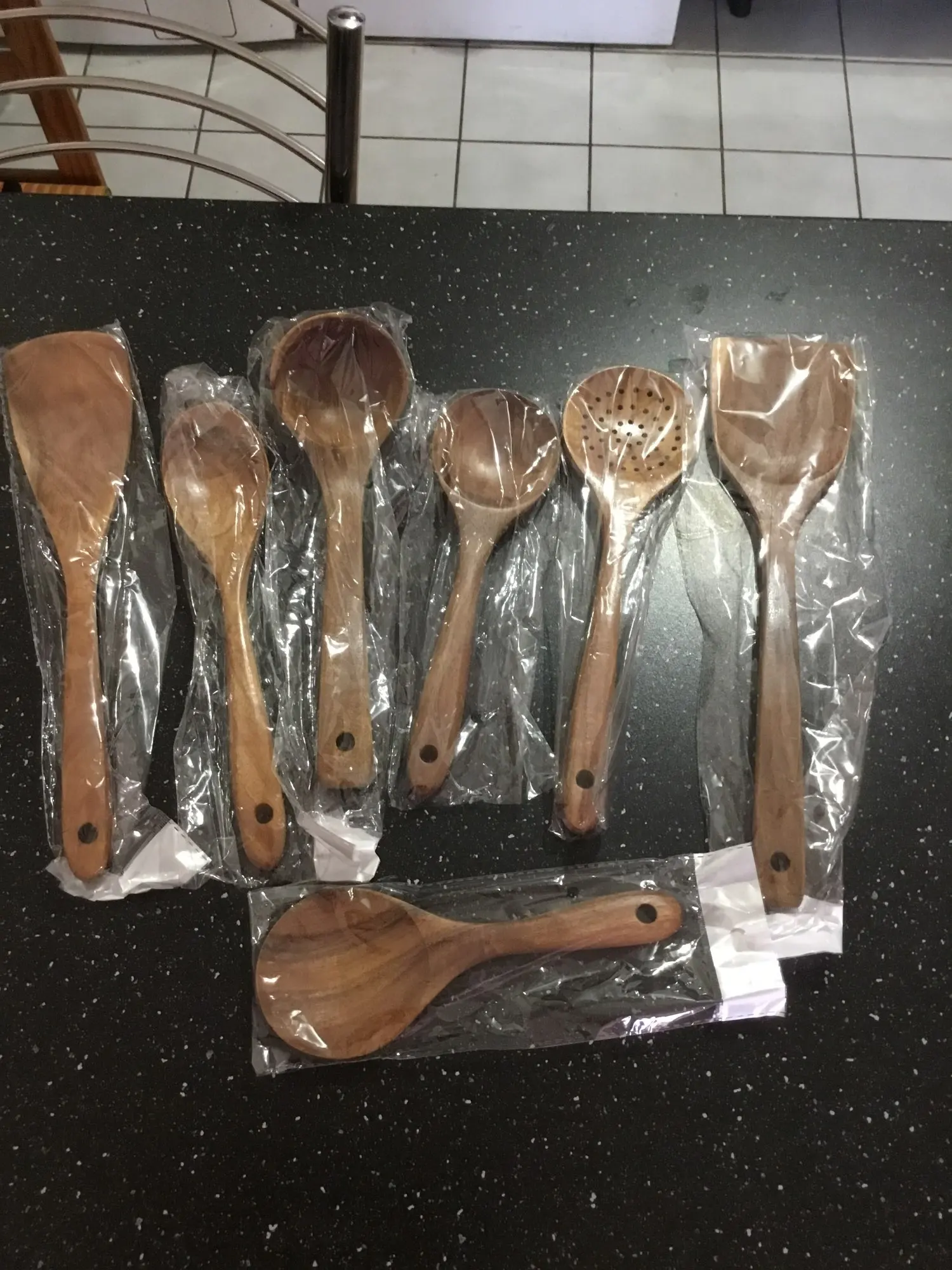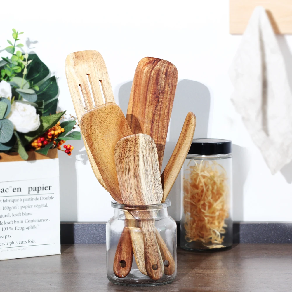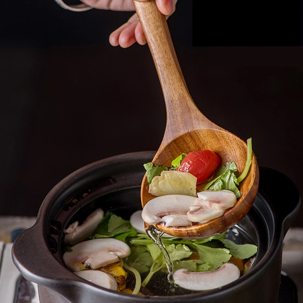 Набор кухонных приборов из тикового дерева, 1-7 шт.компл., кухонный инструмент из натурального дерева, ковш, дуршлаг для риса шумовка для супа, ложка, многоразовый
