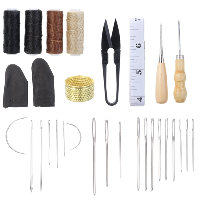 Набор инструментов для изготовления кошельков и ремонта обуви, 28 шт., вощеная кожа, швейные иглы, шило