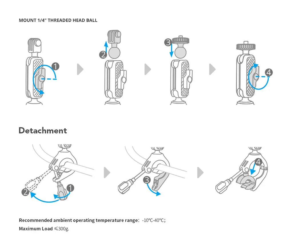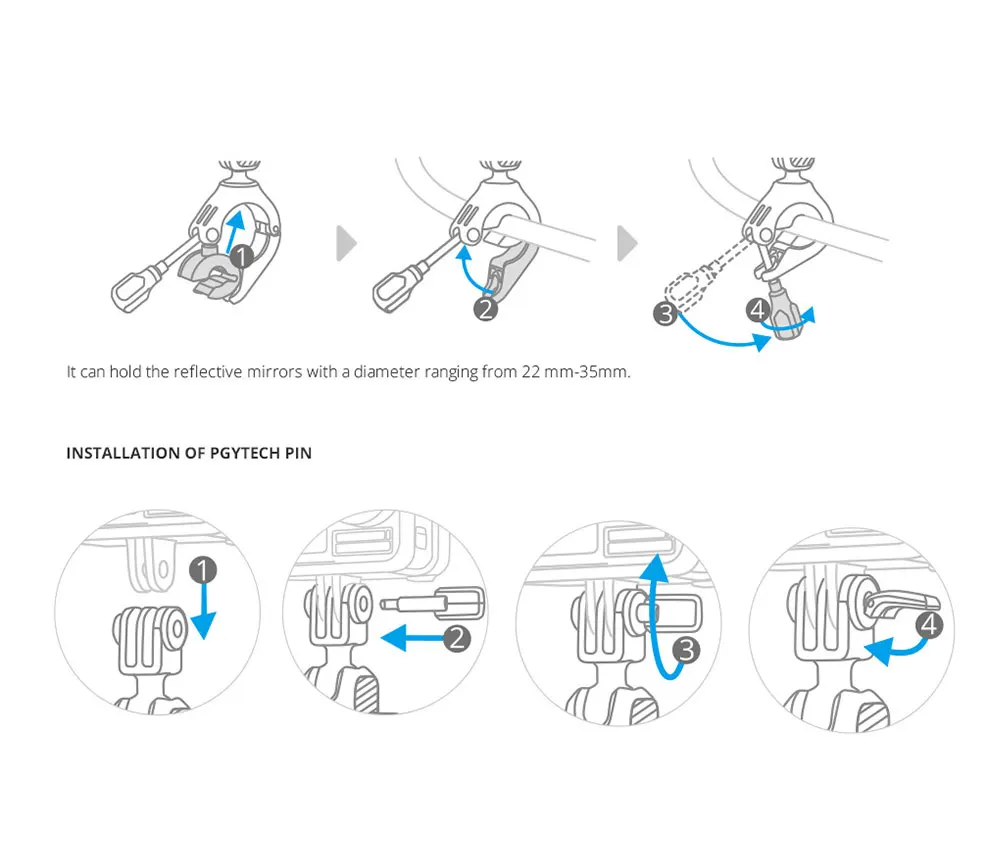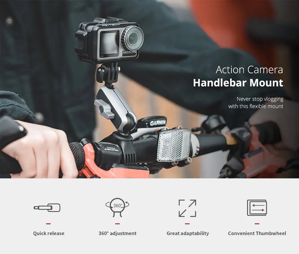 Крепление на руль экшн-камеры PGYTECH, совместимое с DJI Action 2 GoPro 10987 Insta 360, регулируемый руль мотоцикла