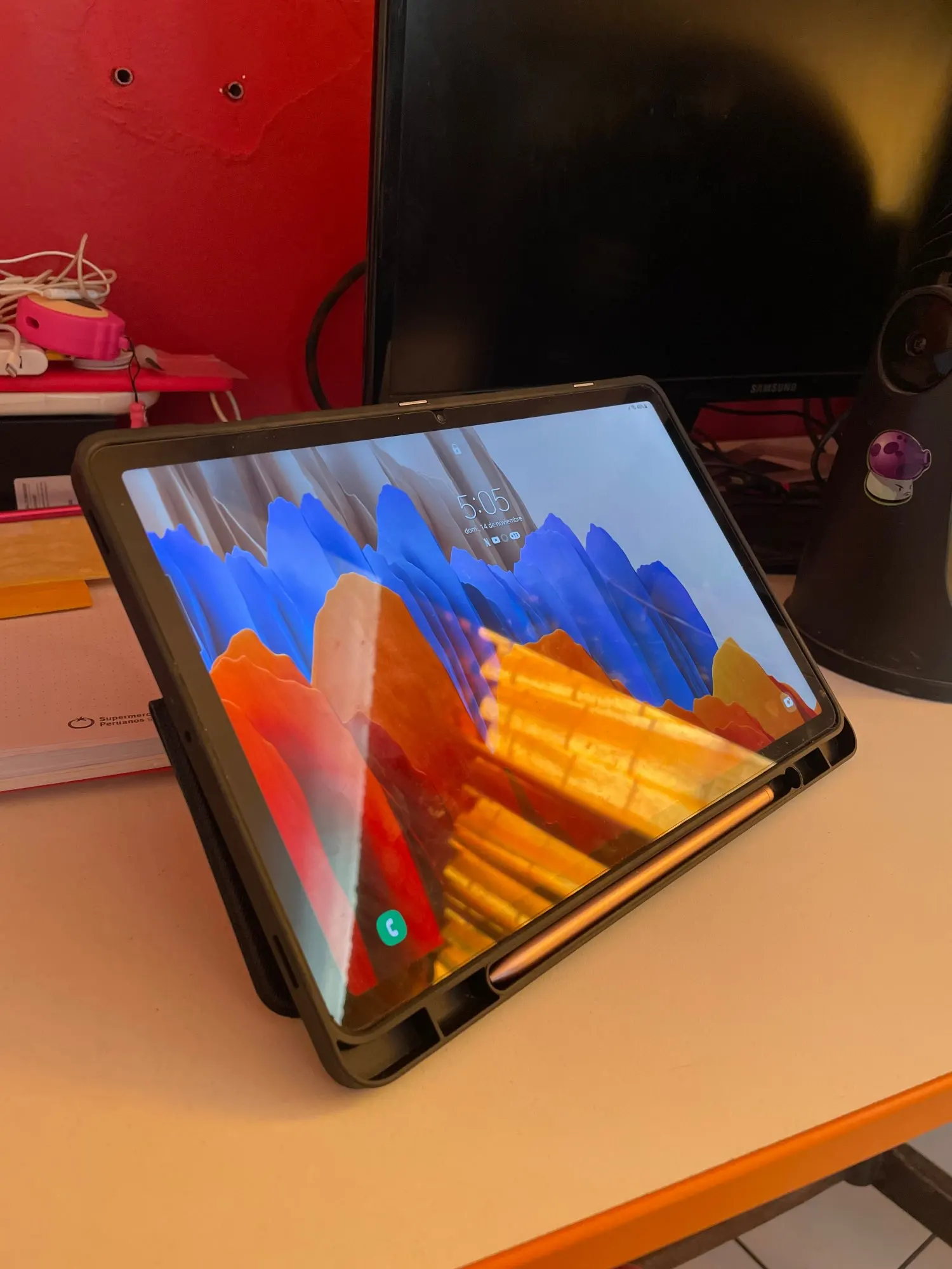 Отлично подходит для Galaxy tab s7 fe. Очень приятная текстура, с местом для ручки s