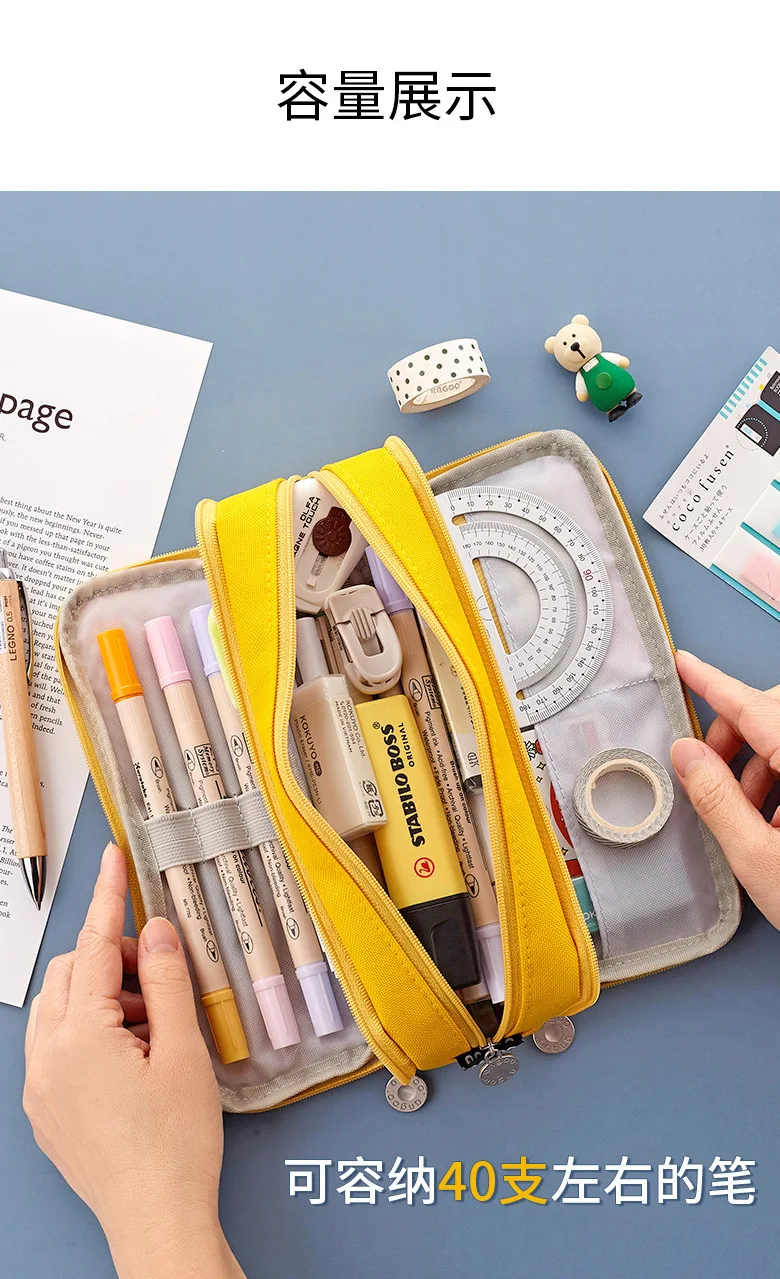 Многофункциональный футляр для канцелярских принадлежностей, с двойным отверстием, большой емкости, в японском и корейском стиле, для мальчиков-школьников